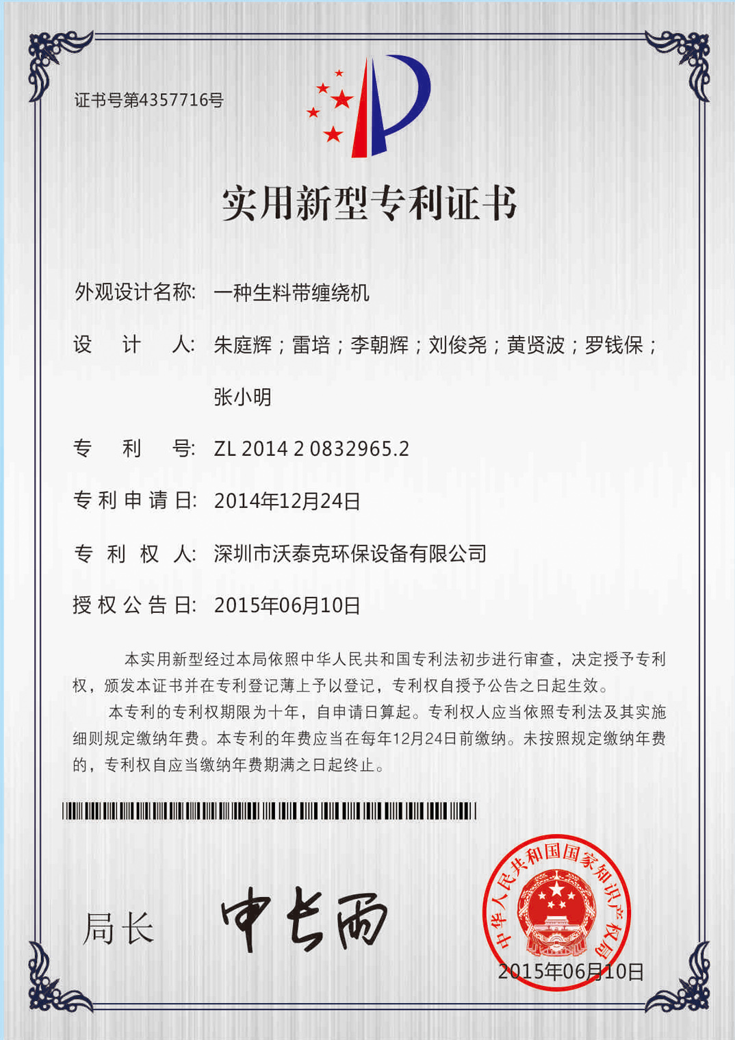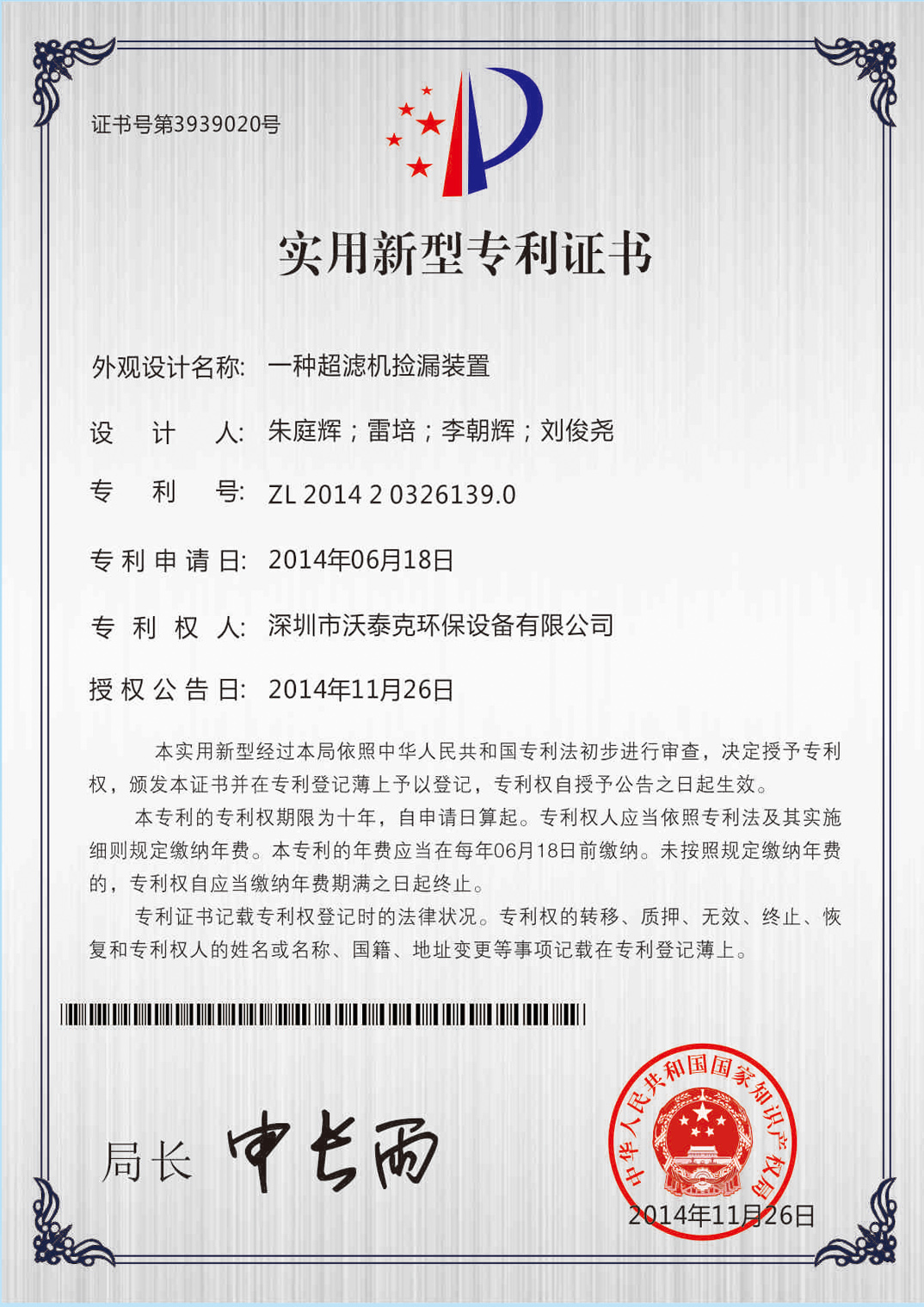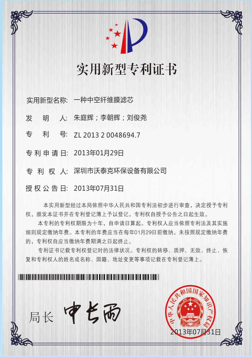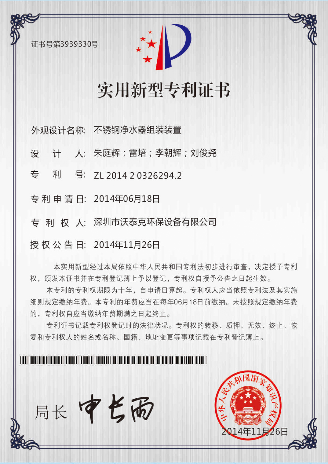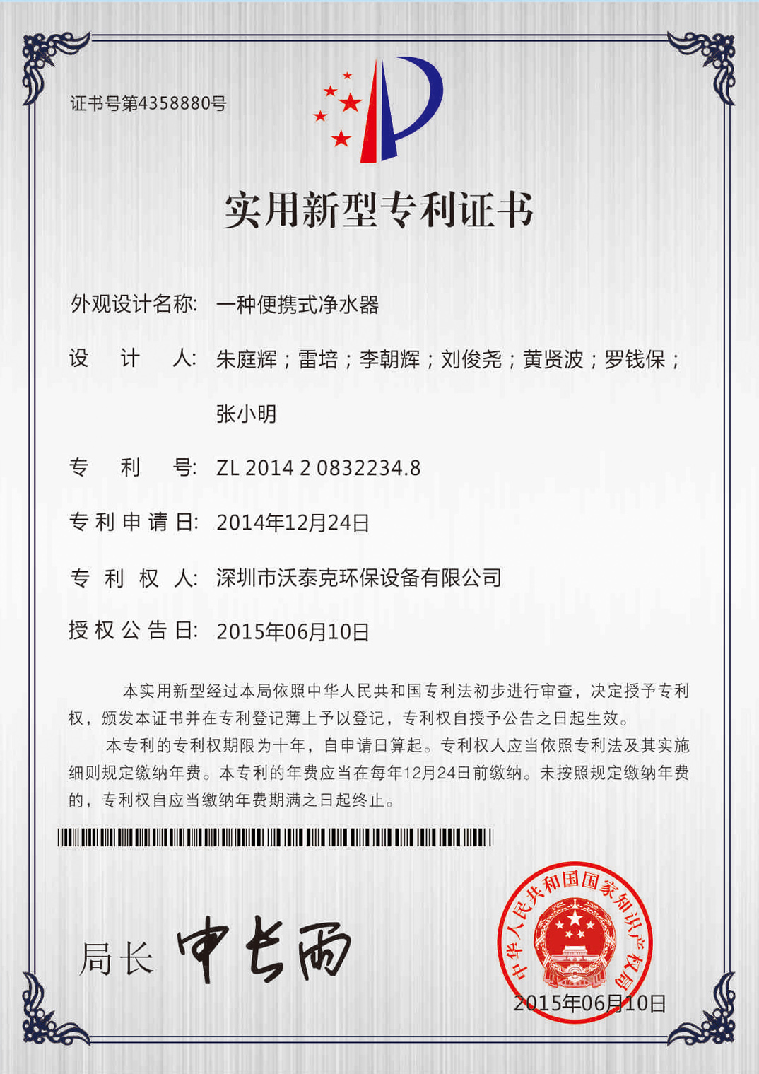 • 專利證書