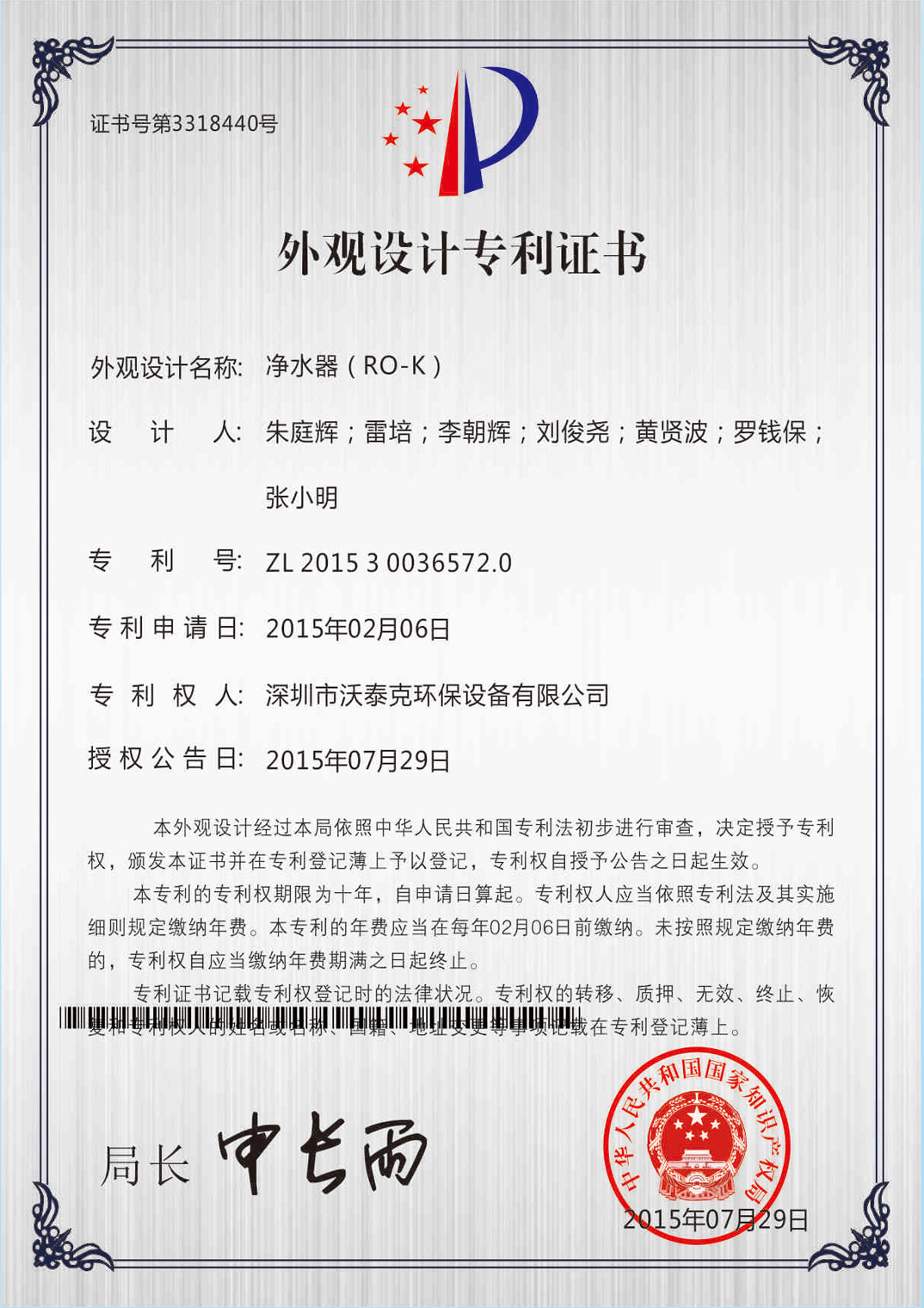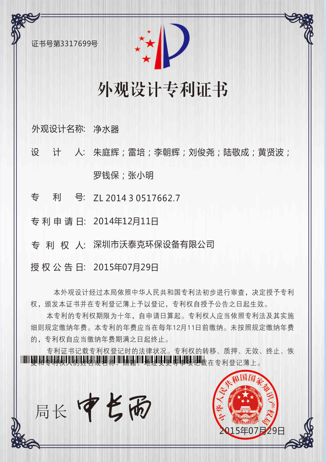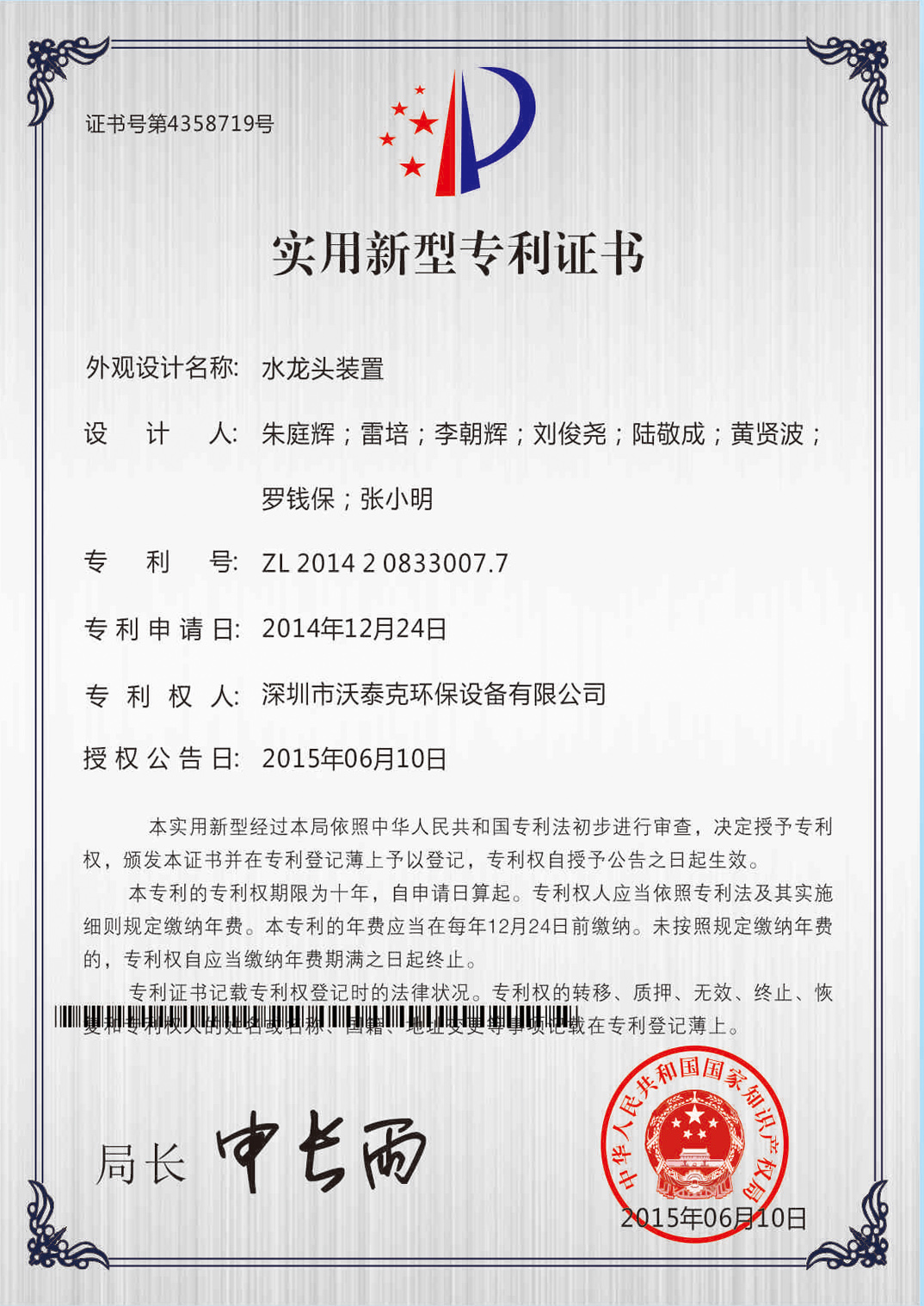 • 專利證書