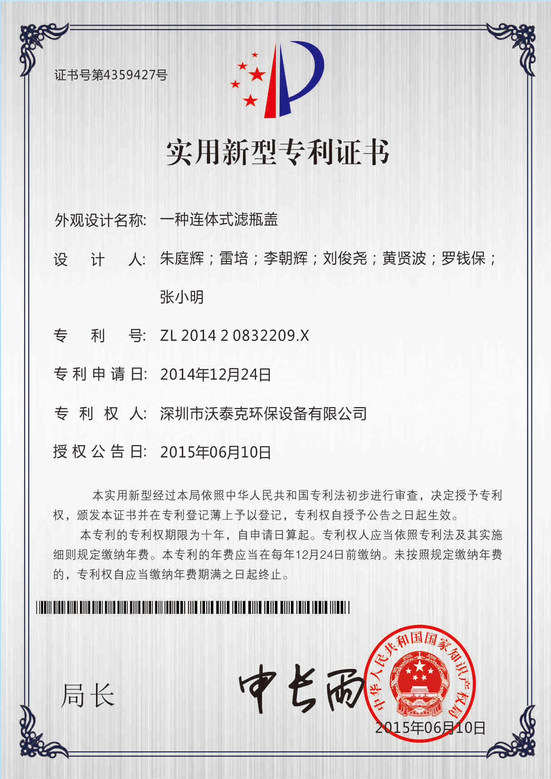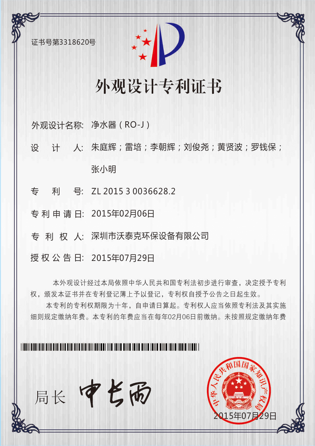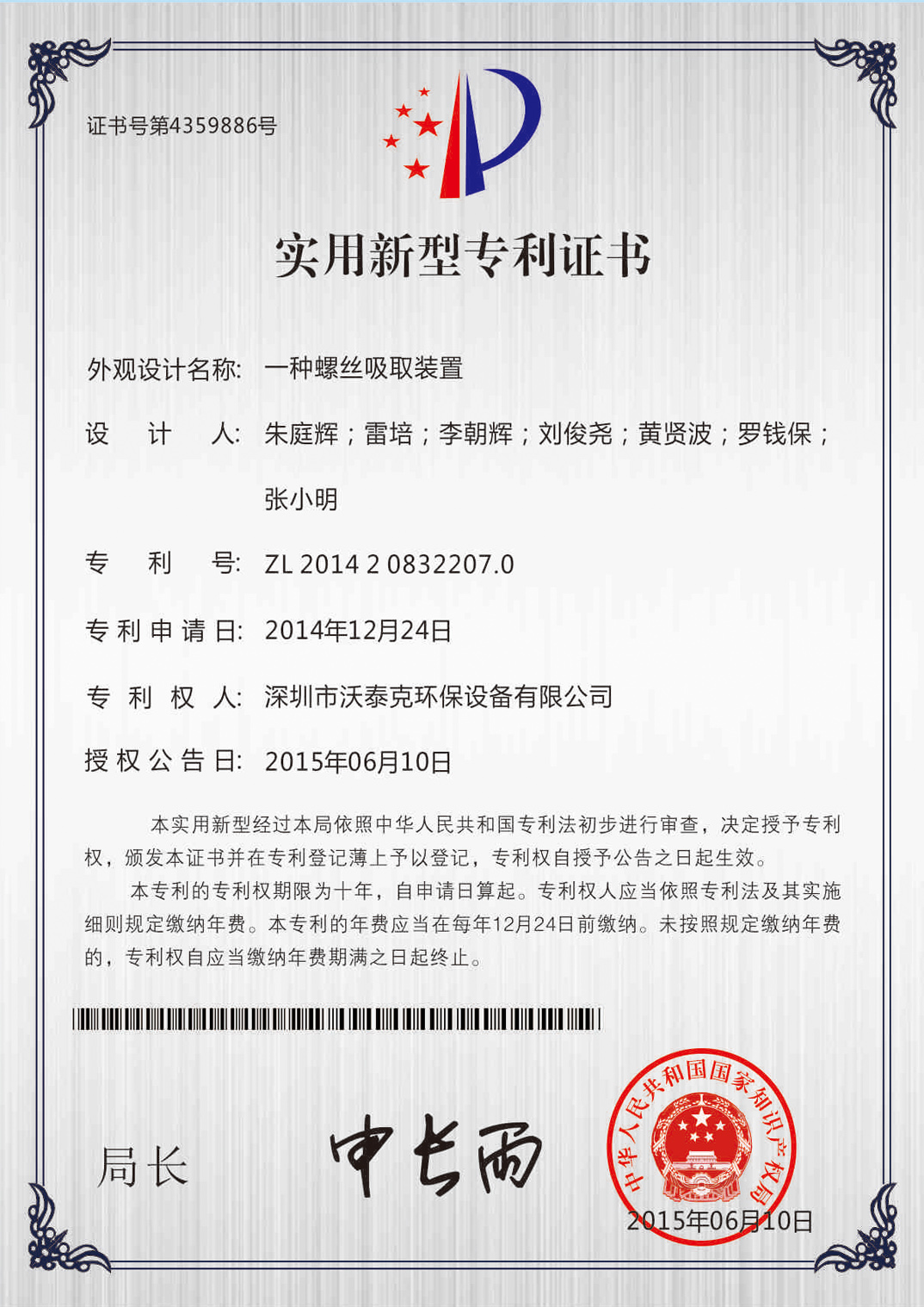 • 專利證書